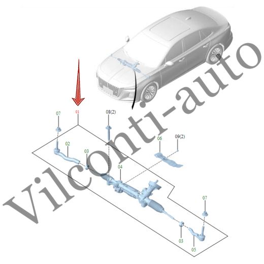 РУЛЕВАЯ РЕЙКА В СБОРЕ С ТЯГОЙ И НАКОНЕЧНИКАМИ HONGQI H5 II 2022-2025 3418310HF01DP 100% ОРИГИНАЛ
