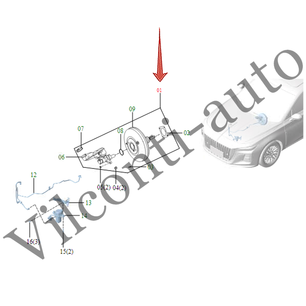 ВАКУУМНЫЙ УСИЛИТЕЛЬ В СБОРЕ HONGQI H5 II 2022-2025 3539010HF01 100% ОРИГИНАЛ